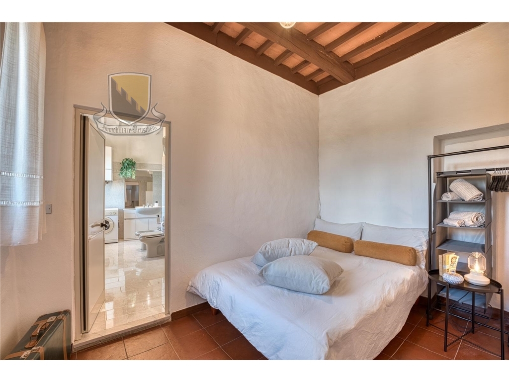 Sovicille, nel caratteristico borgo di Torri, inserito in contesto storico risalente al 1900, appartamento posto al primo ed ultimo piano con affacci panoramici sulla campagna circostante. L'abitazione, in ottimo stato conservativo, mantiene le caratteristiche originarie con i suoi pavimenti in cotto vecchio ed un bellissimo focolare che ci accoglie in cucina. L' appartamento è composto da un ampio ingresso, un soggiorno, una camera matrimoniale ed una seconda camera attualmente di passo, un bagno, una cucina abitabile con ripostiglio ed una cantina al piano terreno. Un abitazione che ti avvolge per le sue caratteristiche, luminosità e panorama.