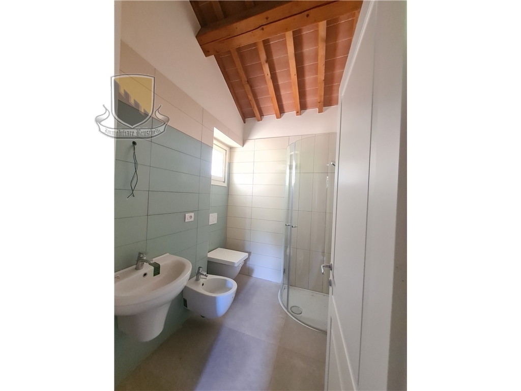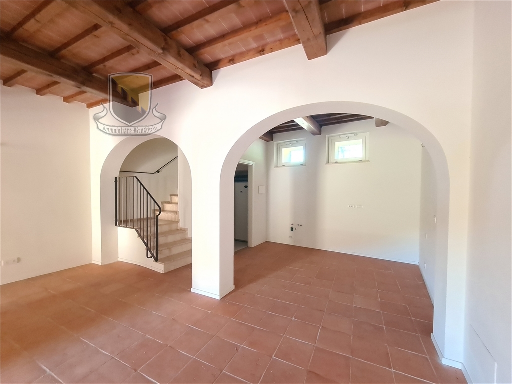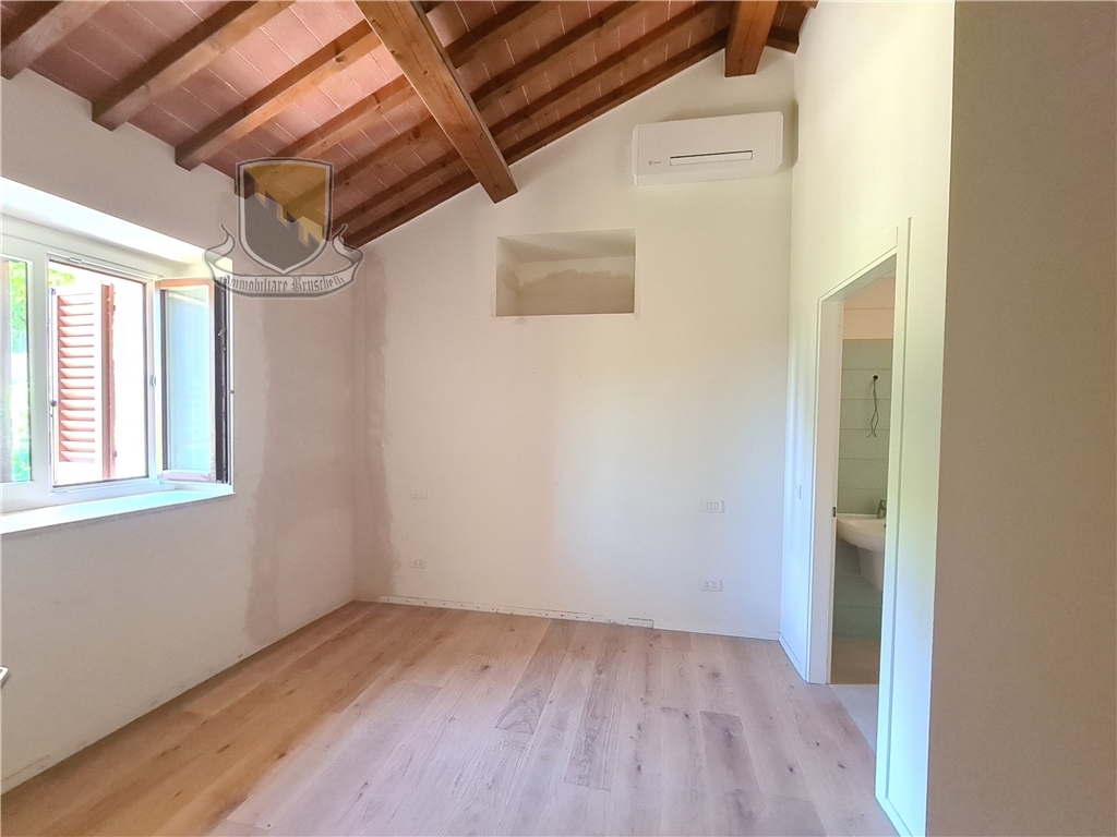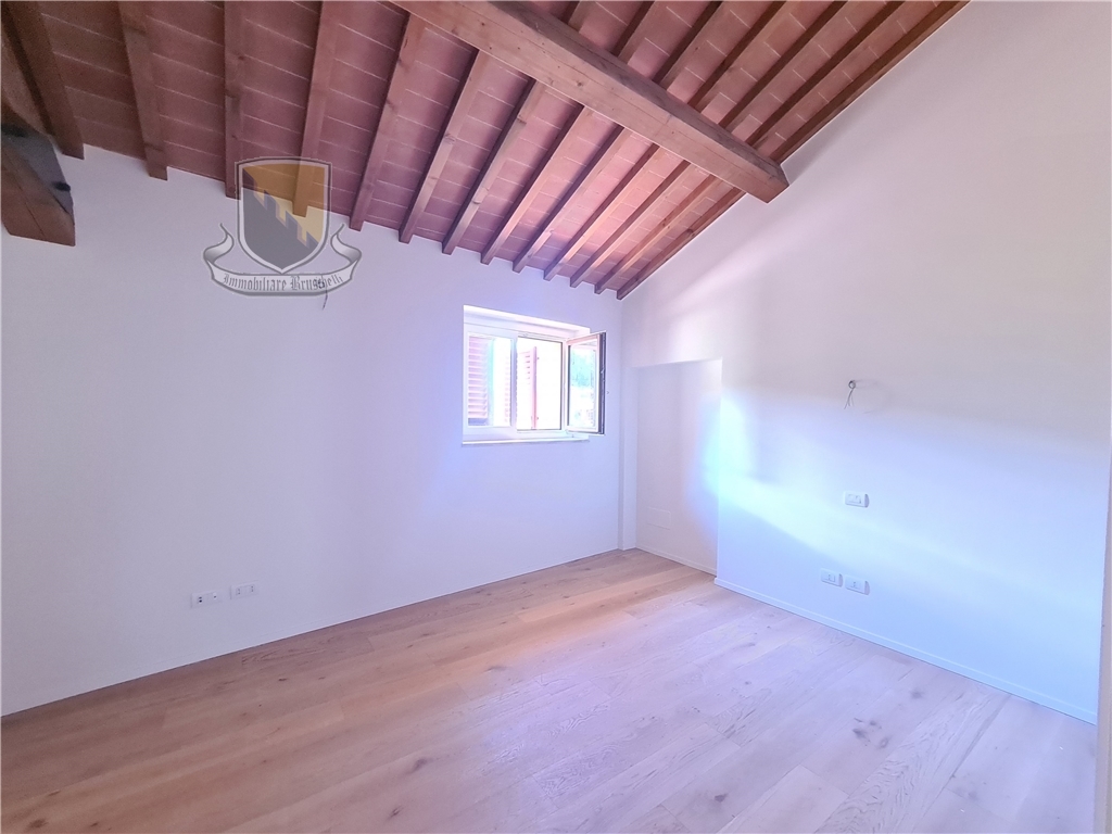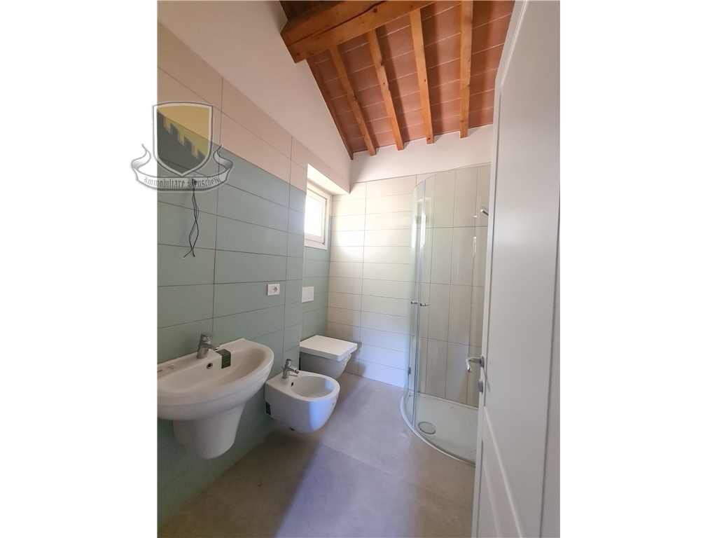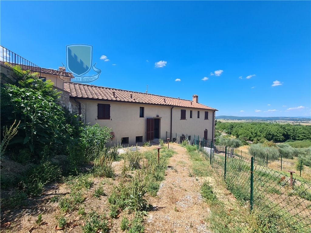 Nel Comune di Sovicille, inserito in uno dei borghi più caratteristici della montagnola Senese ed a soli 10 minuti da Siena, è stato recuperato un vecchio complesso colonico e frazionato in sette unità ciascuna con ingresso indipendente, giardini privati e due posti auto di pertinenza esclusiva. La ristrutturazione è stata eseguita nel rispetto delle caratteristiche originarie ed allo stesso tempo apportando le tecnologie attuali con impianti di riscaldamento radiante a pavimento e raffrescamento tramite splitter, il tutto con pompa di calore e prevedendo piani ad induzione nelle cucine. L'appartamento in oggetto (app. 5) è composto da ingresso indipendente dal giardino di proprietà esclusiva, l'abitazione si sviluppa su due livelli , al piano terra entriamo in un ampio soggiorno con camino che si affaccia sulla cucina con una comoda zona pranzo, ripostiglio ed una caratteristica cantina ricavata nella grotta. Al piano superiore si trovano le camere ma prima di raggiungere il primo livello troviamo un secondo ingresso all'abitazione da un'ulteriore giardino di proprietà esclusiva, proseguendo si raggiunge la zona notte con due camere da letto e due bagni finestrati di cui uno in una delle camere.